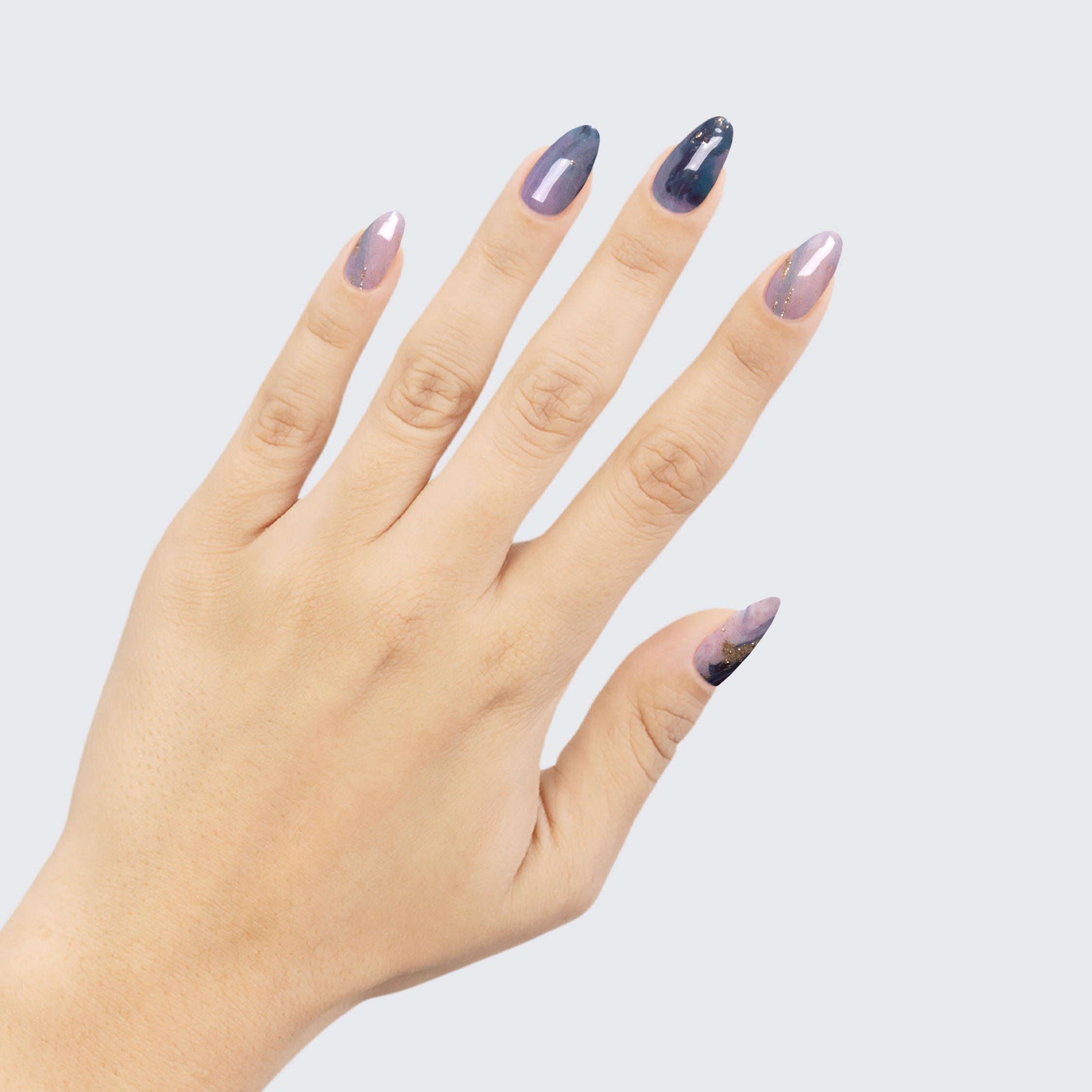 Our GLAM & GO gel nail wraps ensure that no matter how complex your chosen nail design, the application process remains incredibly simple. Our GLAM & GO gel nail wraps require no glue, base coat, or top coat—just peel them off the packaging, apply them to your nail, trim to size, cure twice, and voilà!