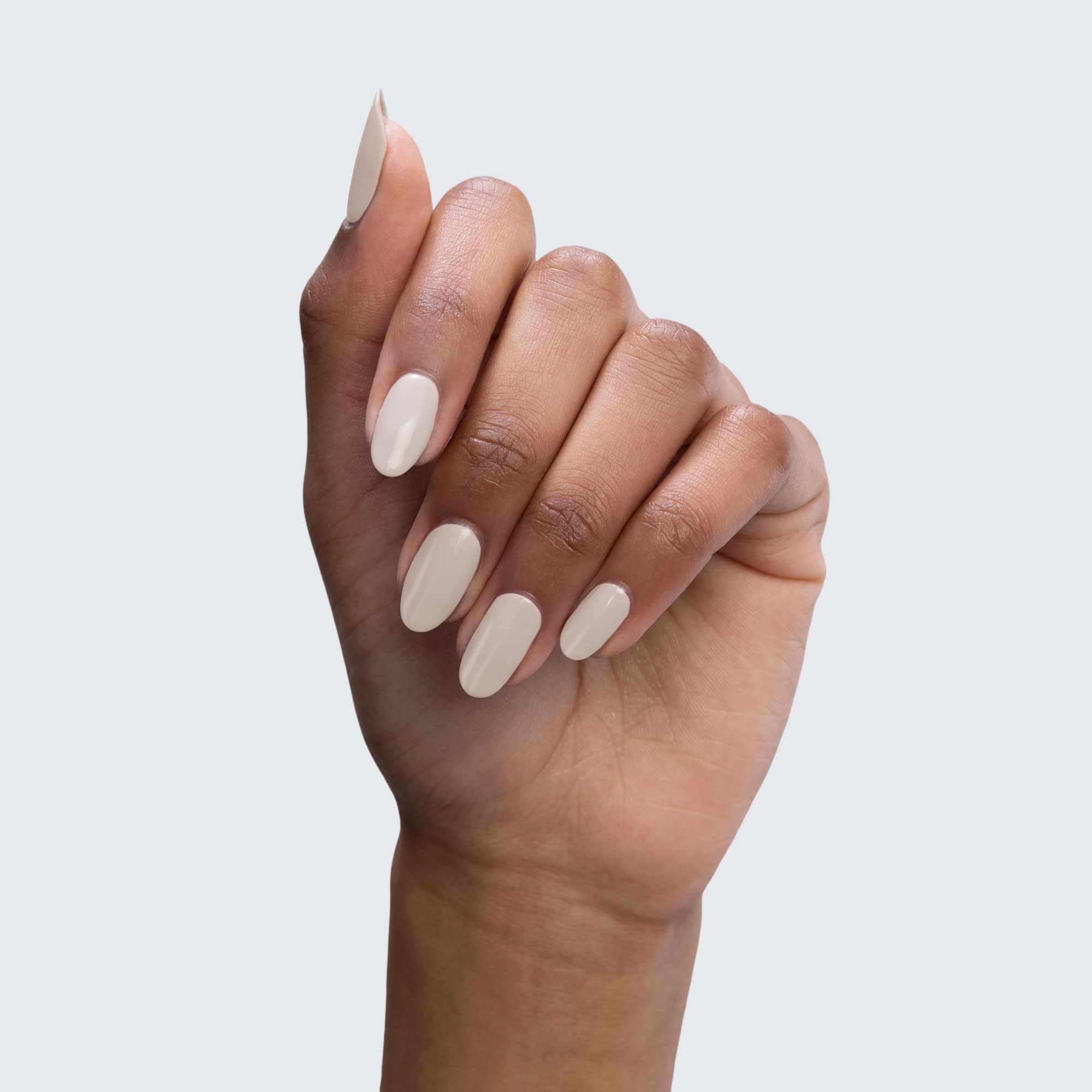Beige. Pale. Nude/muted. Opaque. Warm undertone.