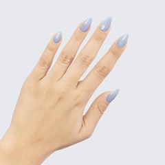 Pale periwinkle blue. Muted*. Frosted. Shimmer. Cool undertone.