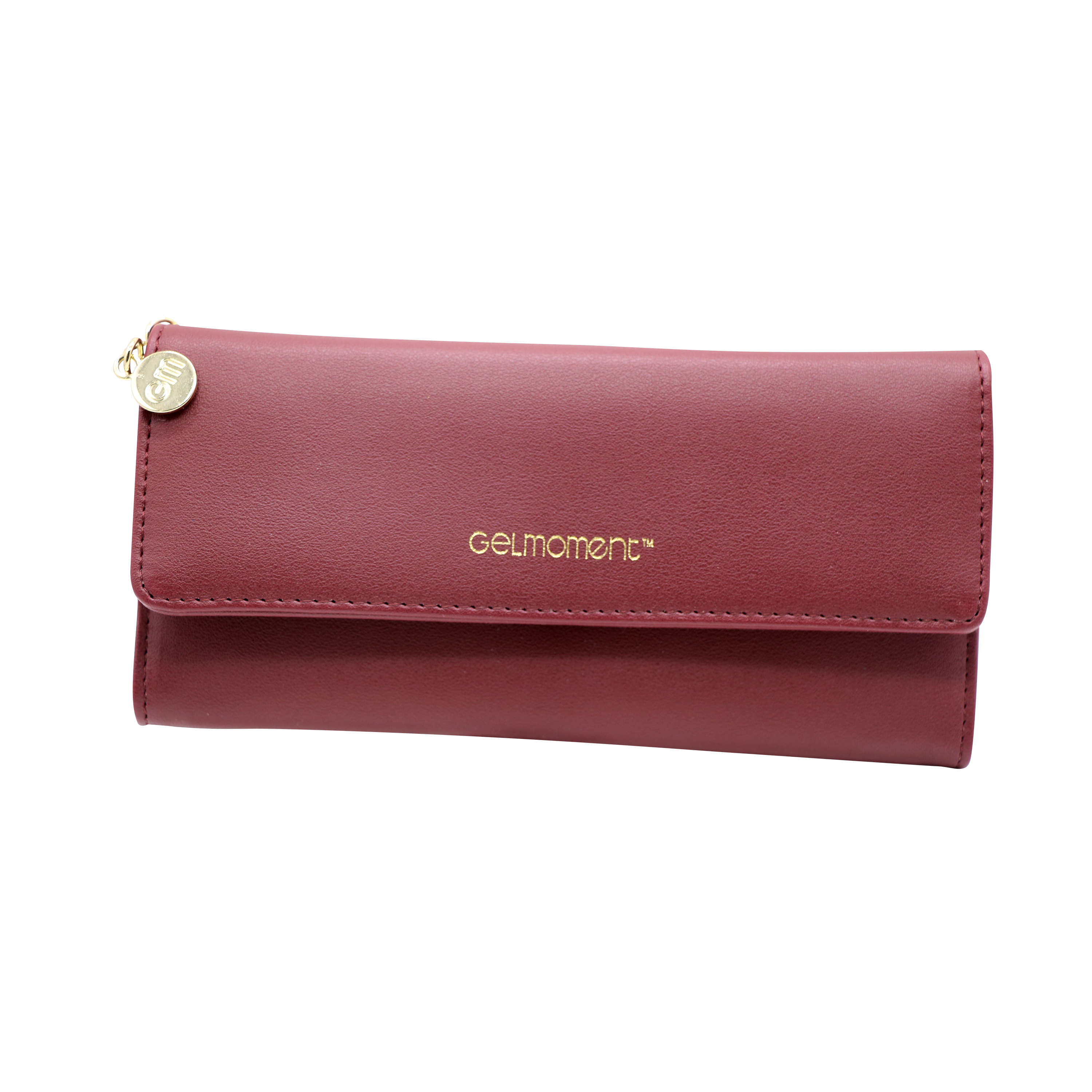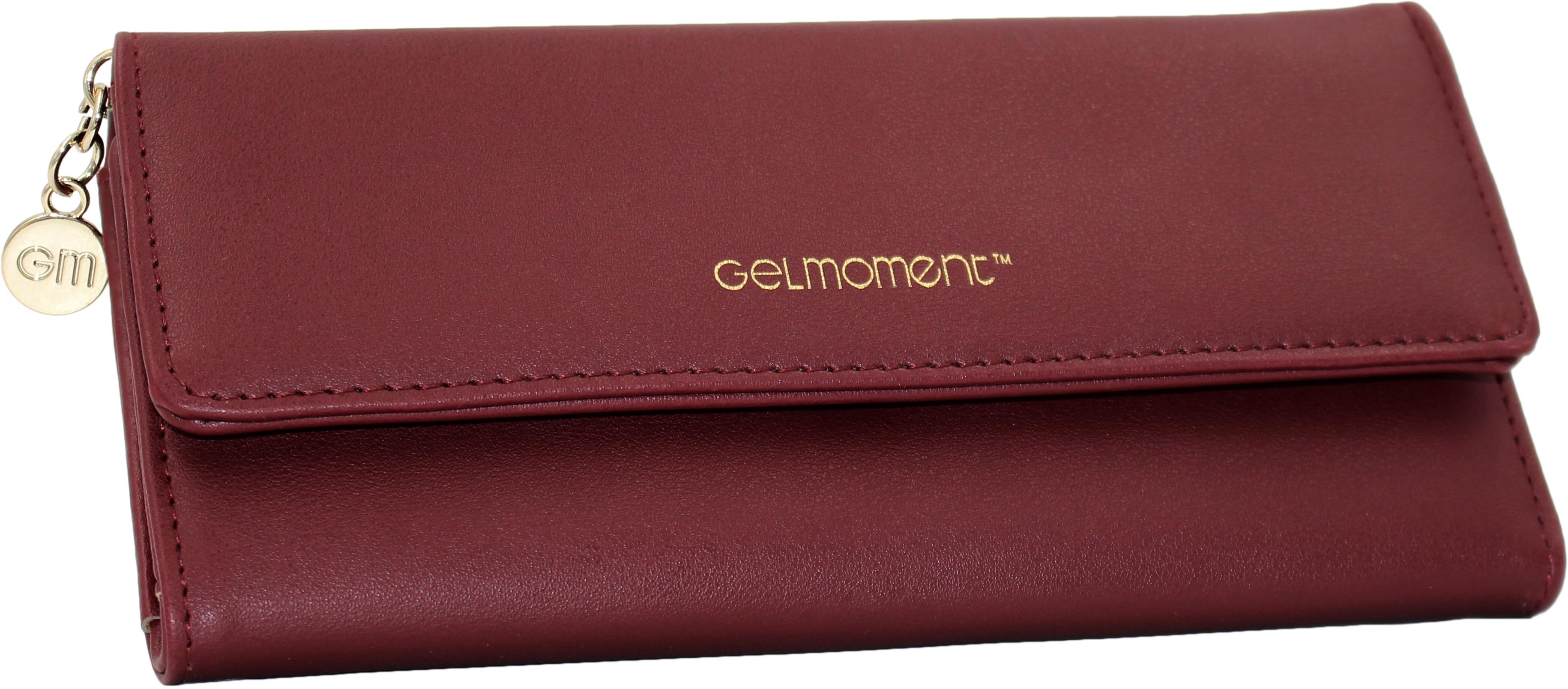 With pockets to hold everything you need, this beautiful GelMoment branded tri-fold wallet will be a conversation starter when you are out and about shopping! Featuring a shiny GelMoment logo charm and gold tone embossed logo on the front, this wallet will show the world the professional that you are!
